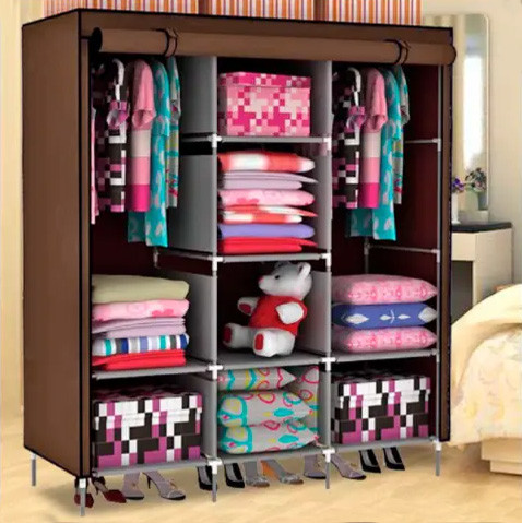 Показати оптові ціниЯкщо Ви часто відпочиваєте на дачі або проживаєте на орендованій квартирі купувати звичайну дерев'яну важку, дорогу шафу не має сенсу. Дешеві меблі з ДСП часто бувають дуже посередньої якості і до того ж швидко втрачають зовнішній вигляд, а довговічні дерев'яні меблі коштують великих грошей. Тому, якщо Ваш бюджет обмежений, а інтер'єру терміново потрібна нова містка шафа, варто задуматися про покупку мобільної шафи для одягу з тканини.