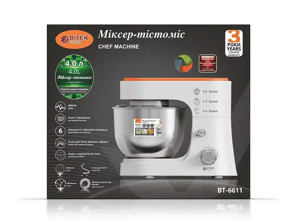 Показати оптові ціниМіксер ручний стаціонарний із чашею — має велику потужність, що дає змогу швидко та якісно змішувати інгредієнти або збити продукт до будь-якої консистенції або замішувати тісто